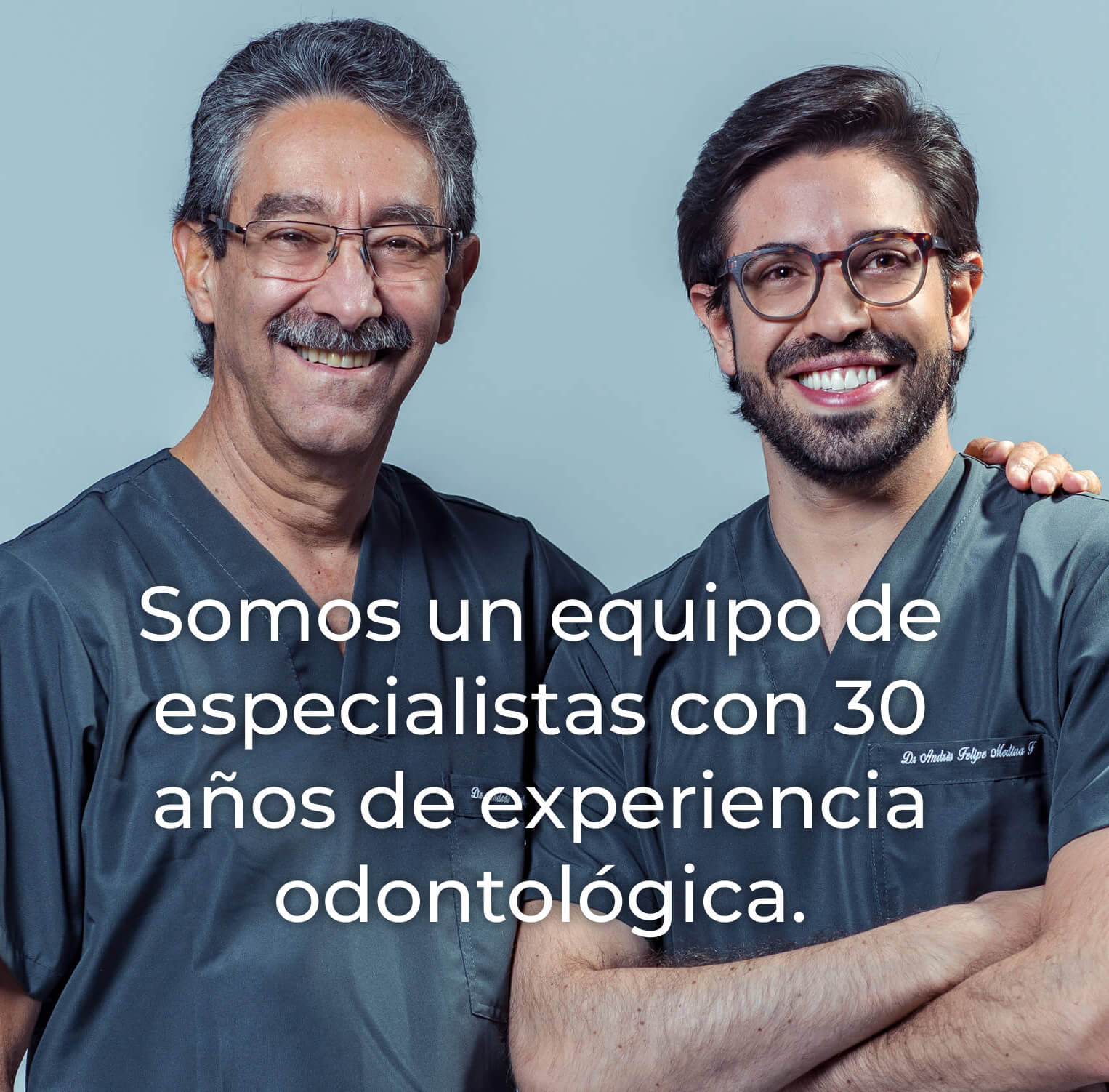 Somos padre e hijo trabajando juntos y complementándonos para brindarte la mejor experiencia y el mejor servicio odontológico. Estamos altamente capacitados y entrenados en el área en el área de la rehabilitación oral, la estética dental , los diseños de sonrisa y los implantes dentales; pero más allá de ser un equipo, somos una familia donde la profesión se ha convertido en un legado que va de generación en generación con una trayectoria de 3 generaciones.